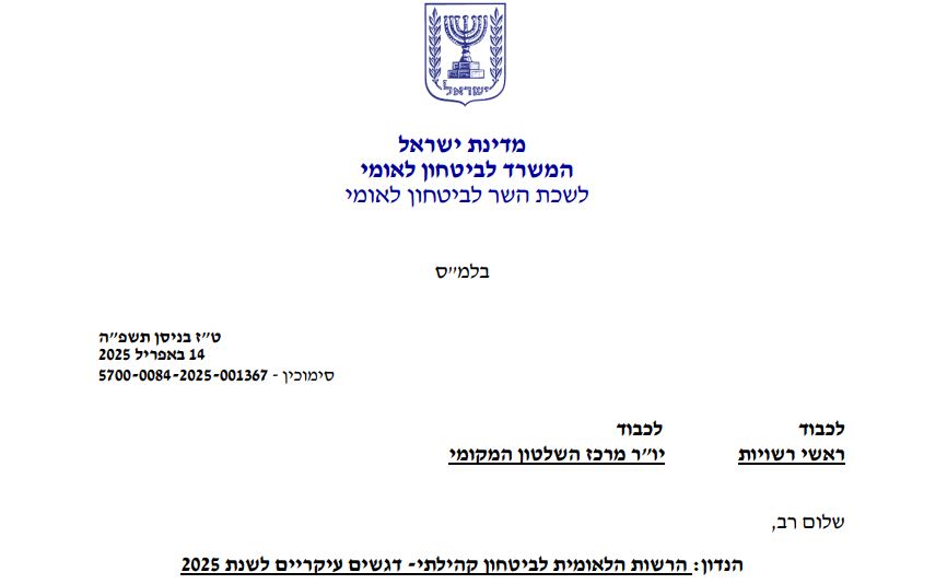 הרשות הלאומית לביטחון קהילתי - דגשים עיקריים לשנת 2025 | | |