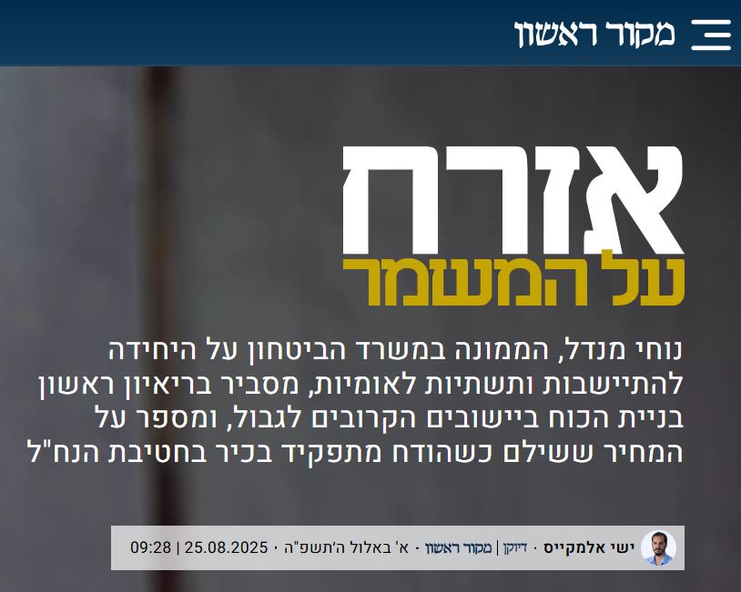ראש היחידה להתיישבות ותשתיות במשרד הביטחון, ממלא תפקיד מרכזי בחיזוק מערכי הביטחון ביישובי הגבול. בכתבה מעניינת וממצה הוא מציג את חשיבות "ההתיישבות הביטחונית" ואת תפקידם של תושבים ערוכים כחומת המגן הראשונה בשעת חירום. הדברים שהוא אומר שם הם בעלי חשיבות רבה לכל קב"ט.