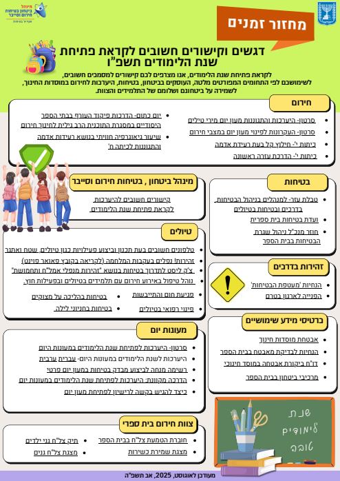 הוועדה הדגישה את המשך ההיערכות האינטנסיבית לפתיחת שנת הלימודים, לצד קידום פתרונות חדשניים ובראשם מודל האבטחה המדלגת שהוצג בבני ברק.