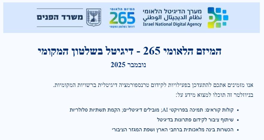 אין רגע דל במדינה שלנו, נדמה שכל יום מביא איתו סערה חדשה ואתגרים לאומיים שמלווים אותנו גם בעשייה היומיומית. אנו מתרגשים בכל פעם מחדש על כל חטוף שחוזר מעזה, ורוחשים כבוד עמוק למשפחות השכולות. ליבנו עם משפחותיהם של ארבעת החטופים שעדיין בשבי, בתקווה ובתפילה שישובו במהרה הביתה. כל המדינה התרגשה אתמול משובו של הדר גולדין, רגע של סגירת מעגל ועוצמה לאומית גדולה. אנו נמצאים בישורת האחרונה של השנה האזרחית. עברנו שנה מורכבת, תובענית ומלאת עשייה, שבה הוכחנו את החוסן והמסירות הרבה למען תושבי מדינת ישראל.
