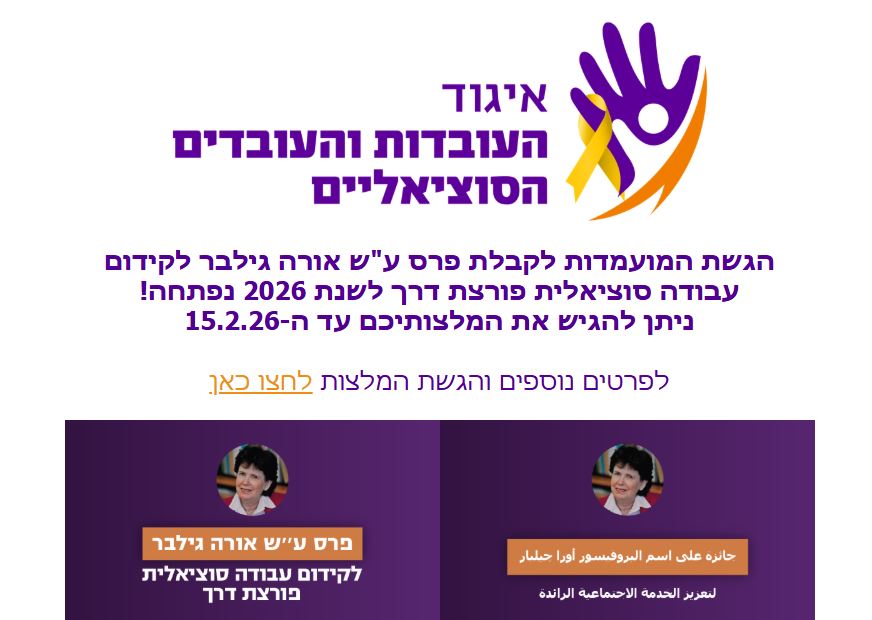 פרס ע"ש פרופ' אורה גילבר לקידום עבודה סוציאלית פורצת דרך 2026 | | |